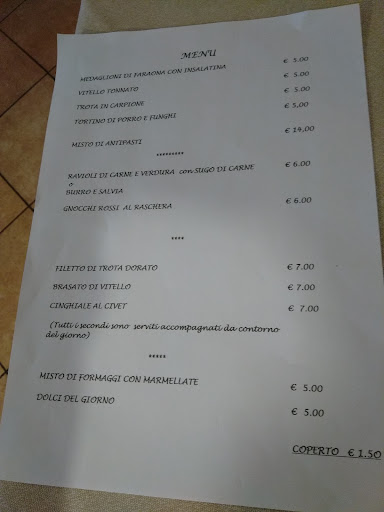 Read moreSon stata al ristorante e ho mangiato ottimi antipasti, primi e secondi... Era un pranzo prenotato per venti persone con menù fisso.. Ogni piatto denotava un alta qualità delle materie prime e un sapere davvero genuino. Salumi fantastici, un tortino alla trota davvero leggera e squisita, verdure in agrodolce davvero sane ed agresti, gnocchi di patate rigorosamente fatti a mano, cinghiale e polenta cotti a rigore e saporiti, trota alla milanese davvero fresca... Consiglio questo posto proprio per la genuinità e qualità dei piatti.... Ci ritornerò senz altro per assaggiare una loro specialità come capra al forno con...