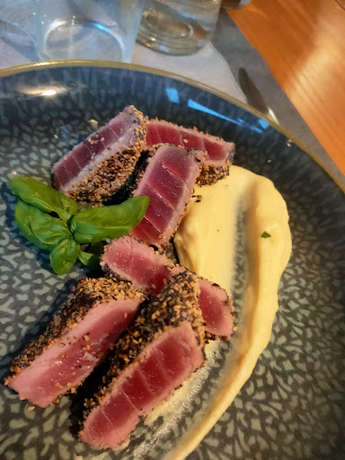 Nice restaurant with a few interesting takes on local dishes, frequented by many locals and used for festive occasions. Tuna was excellent. The pizza is very thin and more grissini than chewy. Kids liked it, but I prefer the more fluffy yeast dough with a bit of chew.