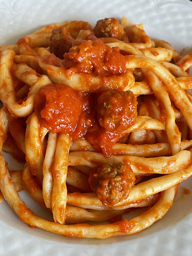 Read moreDi passaggio per andare a Tropea, a due minuti dall’uscita dell’autostrada, 41 gradi alle 14, chiamiamo per sapere se si può pranzare. “Venite, vi aspettiamo!” . Iniziamo bene e continuiamo meglio: cordialità, una trattoria senza troppe ambizioni, abbastanza fresca nonostante la temperatura esterna. Ordiniamo e in 15 minuti arrivano i piatti che posto in foto. Tutto buono, dai fusilli al caciocavallo arrostito. Pezzo forte? Le polpettone fritte e l’immancabile peperoncino...