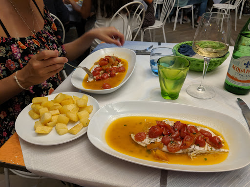 Pessimo ! Pesce di bassissima qualità ! Gamberetti surgelati dei quali due marci ! Pane almeno di tre giorni ! Servizio pessimo ! Cuoca maleducata ! Personale della cucina sporco e sporca la stessa ! NON FATEVI RUBARE I SOLDI DEL CONTO ! NON ANDATECI ! Al nostro puntualizzare tale scadente qualità del cibo è uscita gridando dalla cucina sudicia nella quale lavora sporca , sudata ,offendendo e dicendo che potevamo andarcene senza pagare . Volevamo comunque pagare con carta da persone oneste quali siamo "Noi" e abbiamo lasciato 100 euro in contanti presi senza scontrino ! Purtroppo hanno beccato i turisti /persone sbagliati ed un bel controllo dell'igiene non lo scamperanno ! Abbiamo mangiato in ogni altro locale di Porto Ercole ottimamente trovando ottima cucina, accoglienza e gentilezza ! Purtroppo un brutto locale in una vacanza capita a tutti ! Fate in modo di non farvelo capitare ! Porto Ercole è un posto meraviglioso assolutamente da vedere al quale certe attività rovinano la reputazione ! Dimenticavo di dirvi che se leggete le recensioni troverete ottime solo quelle scritte da guide locali evidentemente scelte per sponsorizzarli ! Nelle altre troverete molto di quello che vi ho scritto !