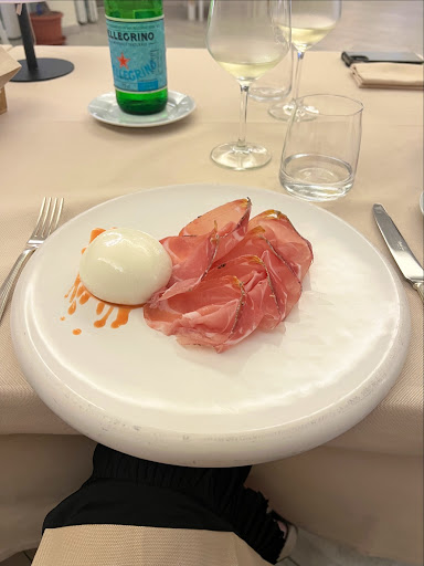Read moreTerrazza per aperitivo sul prato con vista tramonto molto bella, con ottimi cocktail a 18€. Vengono però serviti stuzzichini non freschi (patatine, salatini che sono già stati aperti e sanno di vecchio). Un vero peccato. Il ristorante non ha una vista altrettanto bella: lo spazio esterno è piacevole, ma i tavoli all’interno sono in una location abbastanza scadente e datata. Il menù non ha moltissima varietà, alcuni piatti sono buoni (antipasti: tartare e polpo), altri decisamente meno (risotto all’’astice davvero mediocre e non all’altezza del prezzo, 35€). Nel complesso, ripeterei l’aperitivo in terrazza per la vista del tramonto ma non la cena al ristorante. Il servizio è molto lento, i camerieri molto servizievoli (fin troppo) ma non tutti preparati, spesso sono goffi e danno indicazioni non chiare. Mi aspettavo un’esperienza diversa, non basta la location bella da un punto di vista naturalistico per giustificare popolarità e...