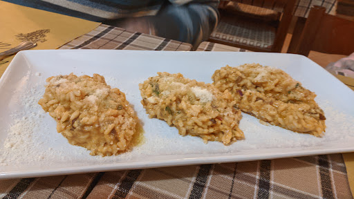 TAGLIATELLE AI PORCINI: sembra essere fatte in casa (che è gradito) ma molte si sono attaccate in cottura, si sono abbozzate quindi sono venute crude e dure; senza condimento, si sentiva solo il gusto leggermente rancido dell'olio dei tre pezzi di porcino dal barattolo. IL PARMIGIANO chiesto per la pasta era un po' a scagliette, un po' a pezzettini e un po' grattugiato (sembrava vecchio e raccolto da rimanenze di formaggio insipido). PIZZA: se vi piace mangiare il bordino qui vi dovete fare passare questa voglia perché tre su tre avevano i bordi bruciati/carbonizzati e anche la parte col condimento risultava asciutissima. Il condimento della pizza è anche buonino ma cotto così tanto non si capisce più se è una pizza appena fatta o riscaldata troppo il giorno dopo. La pizza bisogna saperla cuocere!!! FIORE DI ZUCCA: molto, molto buono. Se avessi saputo della scarsezza delle altre portate avrei mangiato solo una dozzina di...