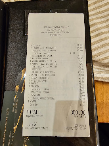 Read moreHo letto le recensioni...tardi, altrimenti avrei evitato accuratamente il posto. Partiamo dalla denominazione, agriturismo. Ebbene a mio avviso non è un agriturismo, semmai una trattoria turistica travestita da ristorante che propone qualche pietanza particolare ed inusuale per i campi flegrei, come gli gnocchi pasticciati con salsiccia oppure tagliolini con presunto tartufo. Credo che sia un artefizio fiscale per risparmiare sull'irpef in quanto gli agriturismi pagano sul 25% per IRPEF mentre ristoranti su tutto il gettito irpef. Siamo arrivati per la via Cappella all'ingresso dell'accesso, alquanto disagevole e non illuminato, percorso un viottolo fino alla struttura vera e propria. Esternamente Il ristorante si sviluppa sotto ad un limoneto molto carino e suggestivo, fresco, con tavoli in legno apparecchiato con tovaglioli, posateria e bicchieri ma senza tovaglia; il nostro tavolo era piccolo. Niente menù cartaceo, richiesto alla cameriera, ma solo il qr-code (simbolo della neo modernità tracciante ed imperante) che trovo limitante nei confronti di chi è abituato a leggere dal menù fisico. Volevamo ordinare due menù completi e lasciare che altri quattro commensali ordinassero a piacere, non è stato possibile per la regola stabilita dal ristoratore; altro limite assurdo. Ordinati sei antipasti, ed uno si aspetta il suo piatto con dentro quanto indicato dal menù, invece piatti collettivi da dividere tra gli ospiti e fichi del Cilento, indicate nel menu, mancanti: stesso prezzo. Al di là di tutto, personalmente ho preso solo un antipasto e una bottiglia di vino Moio 57, tranne il buon sapore di ricotta nel "ciurillo fritto" e in uno degli assaggi dei due formaggi portati a tavola, il resto delle pietanze, dalla tartare ai primi e i secondi, non avevano alcun sapore tranne quello delle salsine assurde distribuite sugli antipasti, oppure dell'impanatura, o ancora fette di carne tagliuzzata spacciata per tartare. Il ristoratore crede che bastino delle stoviglie particolari, oppure dei germogli decorativi, oppure delle salse a corredo delle pietanze, o ancora una location a fare un buon ristorante. Diciamoglielo a Don Salvatore, non è così. Per educazione abbiamo lasciato 15€di mancia ai camerieri e 10€ al simpatico parcheggiatore. Se proprio volete provare questa trattoria, scusate agriturismo, chiedete il menù fisso e sperate in un...