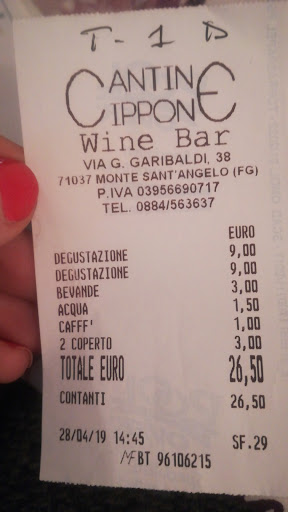 Read moreNulla da dire suo posto o sul servizio... Ma purtroppo noto che il locale è molto spesso vuoto ed è facile capire il perché.. in un posto come Monte Sant angelo avere prezzi come Milano è un po esagerato.. il tagliere con salumi e formaggi, 18 euro, che detta così può sembrare un'ottima offerta ma la quantità è davvero poca; come una schiacciata con olio e origano 9 euro.. 9 euro sono tantissimi. Non discuto sulla qualità in quanto siamo nella norma ma i prezzi sono davvero alti. Uscire per fare un semplice aperitivo e spendere 30 euro a...
