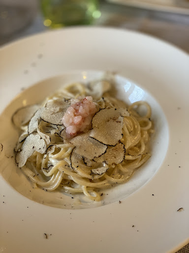 Read moreRistorante semplice ma molto semplice ed accogliente. Abbiamo optato per una cena a base di pesce. Antipasto misto di pesce crudo eccellente ve lo consiglio vivamente. Primo risotto radicchio gamberi e gorgonzola molto buono ero titubante credendo si sentisse tanto il gorgonzola e invece giusto per darli la cremosità al piatto. Spaghetti cacio e pepe con gamberi rossi e tartufo, si presenta bene e buono anche se, l'unica nota che posso fare, credevo si sentisse di più il profumo del tartufo. Secondo scaloppa di rombo ai funghi. Credevo ce lo portassero al tavolo intero e poi lo servivano invece lo avevano già impiattato spezzettato, buono "ma senza lode". Dolce cestino croccante con gelato e crema lamponi. Il croccante era favoloso e anche il gelato aveva un gusto e una morbidezza al palato. Consiglio una sosta se siete...