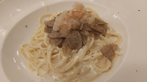 Visitato in famiglia per occasione. Si presenta un locale curato nei dettagli e arioso. Veniamo accolti dai titolari che gentili ci accompagnano al tavolo e ci offrono un canile di ottimo vino del territorio. La carta di presenta attenta e spazia dal crudo di pesce ai piatti del territorio. Ci portano del pane fatto in casa molto buono e caldo e cominciamo l esperienza con del crudo di pesce ben servito e molto buono del baccalà mantecato che risulta cremoso e saporito e dei salumi di ricerca anche essi molto molto buoni. Menzione speciale al disotto con gamberi e tartufo ottimamente eseguito e curato, cremoso cottura al dente perfetta ed equilibrio di sapori eccezionale. I bimbi hanno mangiato dei vigili fatti in casa al ragout di anatra che erano speciali. Seguiamo con delle capesante al forno e aragostelle scampi e gamberi, buone e non maltrattate. Concludiamo con dei dolci che erano uno più buono dell' altro, dal cestino croccante con gelato al semifreddo di pistacchio e salsa al caramello finendo con una magistrale frolla fatta in casa con crema pasticcera e fragole (una delizia). Conto giustissimo e torneremo sicuramente ! BRAVI...