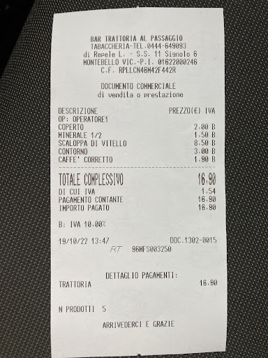 Read moreTrattoria/osteria alla carta no menù fisso... primo secondo contorno caffe 25€... interni datati e bagno alla turca.. un posto così di passaggio dove ci si ferma per il mangiare da lavoro è veramente troppo. Se confrontiamo con altre realtà similari si paga 10€ di meno che...