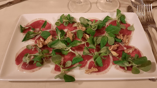 Read moreDue stelle, perché da questo posto ci saremmo aspettati di meglio!!, una serata che ha preso una piega sbagliata fin dall inizio. Avevo prenotato per me e mia moglie fuori, il giorno prima dal telefono mi avevano detto che prima delle nove e mezzo nn c'era posto. Una volta arrivati al sabato sera, premetto che, eravamo in ritardo di in quarto d ora, ma io ho avvertito il personale del ritardo. Quando siamo arrivati, siamo stati in attesa di un tavolo per quasi mezz'ora, e ci hanno fatto accomodare in veranda! (Nell attesa del tavolo fuori, ci avrebbero fatto ordinare lì), la verità era un altra, è che se io non mi fossi imposto a voler andare fuori ci avrebbero lasciati dentro, fregandosene. Al che, avendo visto il mio disappunto, arrivati all antipasti, una signora ci ha fatti alzare con le nostre stoviglie in mano, tovaglioli... Bottiglie... Per andare fuori! ... Abbiamo fatto anche da camerieri 🤣, UNA COSA MAI SUCCESSA!!...siamo rimasti senza parole di questo servizio. L antipasti..io avevo la battuta di chianina, che sinceramente era parecchio grassa come carne e non era battuta come si deve, mia moglie salumi e crostini,... Il crudo che pareva il fondo della coscia ormai finito e pieno di unto, e i sughi sui crostini non freschi sicuramente del giorno prima. Unico piatto diciamo che ci è piaciuto era il filetto di manzo che veramente si scioglieva in bocca, quello era un bel taglio di carne con patate fritte altrettanto buone. Il dolce insomma, a mia moglie hanno portato una striscia "non una fetta" di mousse di yogurt 🤣, io gelato al limone tutto ok. Una volta arrivati al conto la signora ci aveva detto a battuta se ci era mai successo di alzarci così e noi... "no ovviamente è la prima volta"... Arriviamo al prezzo, nessun minimo di sconto,... Prezzo pieno fino al centesimo 98.60 mi pare.