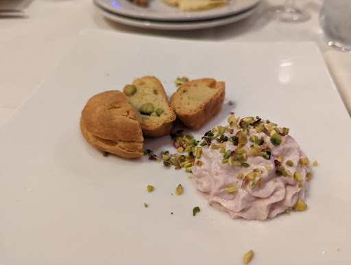 Read moreViste le buone recensioni della cucina e del servizio decidiamo di provare la cena menù fisso del 14 Agosto. All'arrivo troviamo uno spuntino a base di polpettine di ceci, mozzarelline fritte e patatine accompagnato da un prosecco. Il locale è a gestione familiare e si percepisce da subito l'attenzione del personale ad ogni necessità. Davvero gentili e premurosi. La cena si apre con una mousse di mortadella di Prato con cantucci salati. Prosegue con un risotto di "Mezza estate" con pomodorini confit, briciole di prosciutto leggermente arrostite e una punta di scorza limone azzeccatissima. L'altro primo è un fagottino di porri, robiola e salmone su letto di crema di patate; anche qui scelta di ingredienti, consistenza e cottura perfetta. Il flan di zucchine è stato sorprendente con le sue diverse consistenze e la crema di pecorino a dare uno sprint al tutto. Per quanto riguarda il filetto di maiale in crosta ahimè non è riuscito bene, in quanto troppo asciutto in alcuni punti o punzecchiato in altri per "spurgare" il sangue che però lo ha reso comunque poco masticabile. Peccato perché la riduzione e il pistacchio erano perfetti. Nel complesso la cena è stata davvero piacevole e con ricette dove si nota la ricerca delle materie prime e della preparazione e il prezzo è più che giusto. A questo punto la recessione del ristorante si conclude con una nota dolente. L'accompagnamento musicale è stato davvero deludente e a tratti imbarazzante con canzoni cantante fuori tempo o con basi sbagliate, testi a fantasia e interrotti per bere o parlare con altre persone. Assolutamente fuori luogo. Erano più gradevoli i momenti di pausa con playlist già pronte. Secondo me il locale...