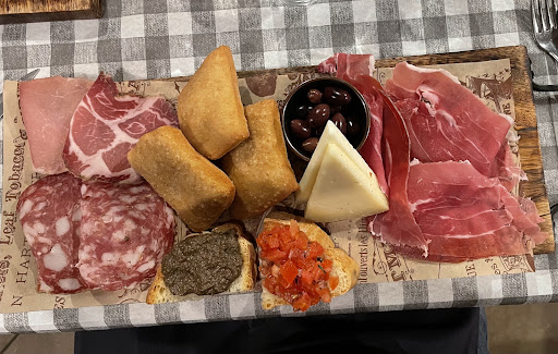 Siamo stati coccolati da un servizio ai tavoli di prim'ordine, così come il resto. Porzioni abbondanti, fritto di acciughe e foglie di salvia asciutto, croccante, nonostante ciò il pesce risultava pieno è carnoso. Ottima la tagliata al lardo di colonnata, il sapore della carne forse un pò coperto da quello forte del lardo. La carne era tenerissima. Ho apprezzato molto un particolare: le ragazze ai tavoli, di una gentilezza estrema, si premuravano (nel caso di scelta di tagliata o bistecca) di chiedere il punto di cottura gradito. I prezzi sono nella norma tendenti più al basso che all'alto. Le porzioni abbondanti e la varietà dei piatti che spazia dalla carne al pesce. Sembravano ottime anche le pizze che abbiamo visto passare. L'osteria offre una serie di menù a prezzo fisso che variano a seconda del giorno della settimana, la descrizione e i menù sul sito web del locale. In aggiunta è offerta un tessera di fidelizzazione sulla quale incollare un bollino ogni dieci euro di spesa. Primi due bollini omaggio. Raggiunti i venti punti si usufruisce di un menù degustazione di pesce offerto dal l'osteria. In estate si mangia al fresco in giardino. Tavoli ben distanziati consentono di mantenere una normale intimità. Eccellente la parte della bottega, che offre ogni genere di alimentari da asporto. Un consiglio per chi giunge tramite navigatore: puntate il civico 41, perché altrimenti vi ritrovate un pò fuori strada... Grande e comodo...