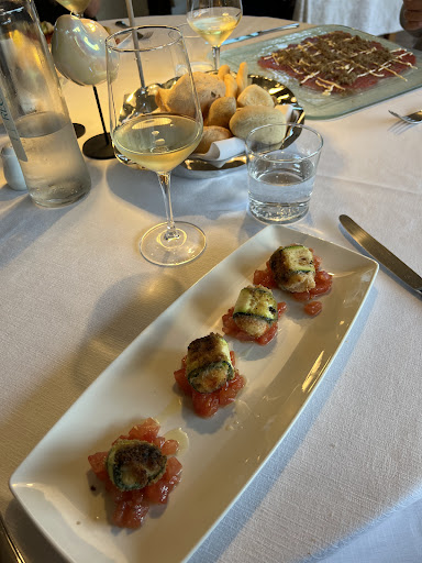 Read moreHo provato questo ristorante spinto dalle buone/ottime recensioni e posso confermarle. Siamo partiti con i paccheri con tonno fresco, pomodorini confit, capperi e pesto leggero. La pasta era leggermente al dente e il tonno era molto buono e morbido, e si sposava molto bene coi pomodorini. Come secondo abbiamo scelto la tartare di filetto di manzo al coltello tartufata con maionese alla salsa Worcestershire, una delizia. La tartare era molto tenera ed il tartufo non copriva il sapore della carne. Abbiamo finito con un buon dolce, un tortino morbido di frutti di bosco e gocce di cioccolato bianco. Servizio attento e garbato, come punti negativi che sono costati una stella sono gli arredi un po' antiquati (soprattutto i bagni) e l'impossibilità di collegarsi al WiFi, in quanto il telefono non prendeva bene (il cameriere dovrebbe sapere la password del ristorante dove lavora). Per il resto le pietanze sono state squisite e nel complesso è stata un'esperienza...