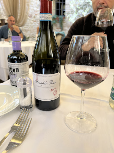 We chose Ristorante Il Coccorone for our weekly Umbrian lunch visit. We were very pleased with the experience and especially the food. The coperto is correct (3 Euro per person) with an assortment of breads that were very tasty. I had the Pappardelle al Sagrantino, which was very hearty. My wife had the Bistecca which was made to perfection. With the assortment of salts along with the pepper it was something even I could eat and want more of (I'm not one to eat beef). Contorno included patate brace and cicoria. The dessert was a crostata with figs that was arguably the best crostata I've ever had. It was made in house and just melted in your mouth. The half liter caraffe of wine was also appropriately priced (6 Euro) and was a very good red wine paired with both dishes. Overall, I would not only recommend dining here to anyone but would also come back to try other dishes. Lastly, the staff was very professional, friendly,...