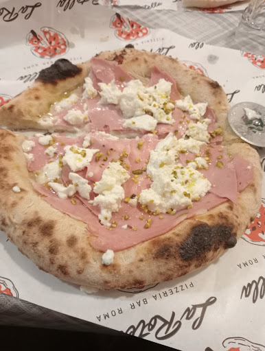 Ultimamente non sono fortunato con "il cibo" pizzeria famosa per la particolarità di come viene consumata la pizza, servita su appositi fogli di carta e si viene muniti solo di una rotella per tagliarla, molto caratteristico. In linea di massima la pizza è buona (non è la prima volta che ci vado) e il posto è carino. In questa ultima visita abbiamo avuto la sfortuna di capitare durante un compleanno di bambini di 12 anni, fatti accomodare a metà sala, si faticava a sentire chi ti stava affianco per quanto urlavano e nessuno ne personale del locale ne i genitori seduti poco distanti se ne sono preoccupati 🤷🏻♂️. La pizza dall'ultima volta hanno aggiunto pizza in stile napoletana (che preferisco rispetto a quella fina) quindi perché non provare quella mortadella bufala e pistacchi... Pizza in stile napoletano una via di mezzo tra la pizzetta del forno e una pizza vera come dimensioni, uno strato di mortadella con attenzione a non sovrapporre le fette, alcuni pezzetti di bufala che dubito abbiano superato in totale 100g e granella di pistacchio, il bordo internamente quasi crudo e il resto poco cotto, la notte passata a vagare per digerirla insieme a mia moglie che aveva fatto una scelta più classica. Conclusione: probabilmente gli daremo un'altra occasione per tutte le volte che ci siamo trovati bene, ma per come siamo stati questa volta...