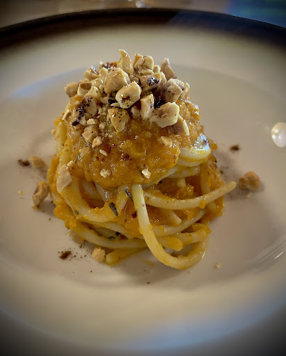 Read moreÈ un ristorante disperso nella campagna di Montefiascone ma il navigatore lo raggiunge con facilità, la titolare è molto affabile ed il posto è raccolto ma di recente fattura e piacevole all'aspetto, i prezzi buoni. Le potenzialità sono enormi, perché le materie prime sono loro o dei dintorni, il problema secondo me è che non sono sfruttate adeguatamente. Le idee ci sono, perché ad esempio gli spaghetti con il cavolo sono molto particolari ma sfruttano poco ad esempio i latticini e male la carne, perché si vanno ad impelagare in tagli estremamente alti, la cui esecuzione culinaria non è sempre adeguata, mentre invece ad esempio lo spezzatino gli viene meglio. Gli affettati sono tagliati spessi e risultano poco amichevoli alla masticazione, la salsa del ragù invece è gustosa, semplice, senza molte spezie ma gustosa. Sono ragazzi giovani e volenterosi, riusciranno migliorare...