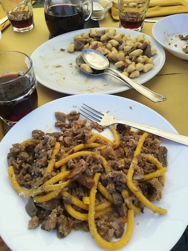 Se non si è pretenziosi e non si cercano le sofisticazioni della cucina moderna, questo posto è per voi... La vera cucina casalinga, nel senso che è tutto fatto da loro e per quanto riguarda il cinghiale in tutte le sue declinazioni, non vi sono paragoni. Per coppie o comitive, d'estate o d'inverno. Il trattamento è cortese e genuino e il conto piccolino... Primi, secondi, contorni e dolci tra i 20 e 25 € a testa... Sarò per sempre loro cliente. Inoltre nella parte allo scoperto c'è una vista magnifica e il locale è vicino a mete di interesse storico e culturale. Sono ammessi anche i cani. È frequentato da gente del posto e questo è di per sé una garanzia di genuinità... Si sá che dalle nostre parti siamo di palato fino. Buona...