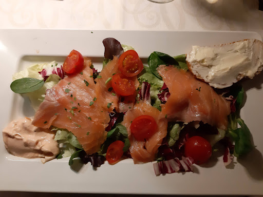 Al momento dell’ordine, preso 15-20 minuti dopo esserci accomodati, una persona del gruppo segnala prontamente la propria intolleranza al glutine; segnalazione evidentemente dimenticata, visto che la tartare di salmone è stata impiattata assieme a qualche fetta di pane.
