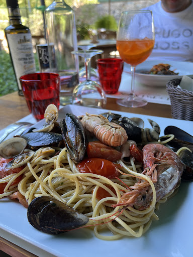 Stopped for lunch and enjoyed it. The restaurant is over an old mill, with flowing water still operational. Main hall is nice and a very ample terrace for eating out in the warmer periods. Home made pasta was very good - duck sauce was exquisite, found the wild boar tasty but slightly oily. Steak second was very well cooked and a good tender slice of meat. Fish dish was salty, but the side garnishes and potatoes were very well done. Since we stopped for lunch, we couldn't try the pizza as only available in the evening so we will...