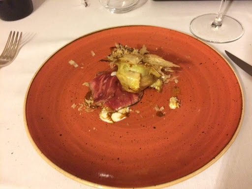 Read morePurtroppo è stato il peggior tasting menu che io e il mio partner abbiamo mai provato. Siamo lieti di aver scelto l’abbinamento vini da 30€ anziché quello da 80€ perché sarebbe stata una grandissima delusione e spreco di soldi. A partire dal servizio, i ragazzi non sapevano ben spiegare i piatti serviti, pochissimi dettagli e pochissima conoscenza della lingua inglese, tanto che il mio partner avrebbe preferito che lo spiegassero in italiano per poi farlo tradurre a me per lui. Gli abbinamenti del vino non erano troppo sbagliati per l’inizio del menu, anche se spesso e volentieri abbiamo dovuto aspettare che portassero l’abbinamento del vino quando avevamo già la portata a tavola, senza parlare del fatto che abbiamo finito con un dessert abbinato al vino rosso con cui stavamo affianco gli ultimi main della carne. Più di una volta i ragazzi hanno provato a prendere via i piatti quando avevamo ancora le posate in mano, mangiando, come se avessero fretta di continuare, così abbiamo chiesto cortesemente di rallentare un po’ il servizio. Gli abbinamenti del cibo erano assolutamente senza senso, senza gusto, alcuni poco salati e altri troppo. Questa voglia estrema di utilizzare le interiora animali senza tenere alcun tipo di tradizionalità (che è la cosa che distingue la nostra cucina e ricerco sempre quando torno a casa dall’estero) era davvero stomachevole. Anche l’uso inappropriato del caviale quando si poteva benissimamente evitare, soprattutto perché non era di buona qualità. All’inizio ero sorpresa dal fatto che un menu di 13 portate costasse meno di 100€, ma l’impiattamento del 90% dei piatti sembrava davvero fatto per prendere in giro, piatti enormi con un boccone al centro. Non ho mai assolutamente avuto nulla contro le piccole porzioni, perché quelle ricche di gusto non possono essere mangiate in grandi quantità (e di ristoranti stellati ne abbiamo provati e ci abbiamo lavorato, quindi sappiamo che le porzioni piccole sono necessarie per non arrivare alla fine del pasto pienissimi da star male), ma queste purtroppo sono state molto deludenti, povere di sapore e non cotte nel modo in cui ci si aspetta in un ristorante con una stella Michelin. A fine cena abbiamo chiesto il conto e dopo aver aspettato 10 minuti ci siamo alzati sperando qualcuno ci venisse incontro, ma nulla, ci siamo diretti verso la porta dove il manager ha finalmente capito e ci ha fatto pagare all’uscita, senza nessun tipo di scuse o cenno di gentilezza. È un peccato vedere che ci siano ristoranti di questo genere che chissà come sono riusciti a guadagnare una stella Michelin, quando lì fuori ce ne sarebbero altri 10 migliori che la...