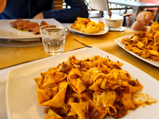 Read moreUn'esperienza da dimenticare! Orribile! Arriviamo,una delle cameriere ci indica un tavolo in un posto stretto dove puzzava,l'aria era pesante, si sentiva un forte odore di topo in putrefazione. Chiedo,cortesemente, di farci spostare in terrazzo dove i tavoli erano distanti ed era un po' di aria. Ci spostano malvolentieri. La cameriera che si ccupava dei tavoli da quest'altra parte fa una faccia scocciata alla mia richiesta,ma la sua collega ci aveva gia fatto accomodare li. Dopo un'ora dal nostro arrivo, la cameriera( la stessa,quella scocciata) ci porta il menu. Aspettiamo altra mezz'ora per dare l'ordine. Il cibo arriva in fretta, ma peccato che arriva soltanto quello per il mio fidanzato. Dopo altri 20 minuti, mi arriva la birra richiesta quando abbiamo fatto l'ordine( quella del mio fidanzato era arrivata quasi mezz'ora prima) e un piatto di pomodori tagliati grossolani e appassiti. Dopo che lui finisce di bere e mangiare,arriva anche a me il piatto tanto atteso,ma purtroppo lo devo fare tornare in cucina perché la carne(arista) completamente cruda. Qui,magari è stata la colpa mia,avrei dovuto dirle di cuocerla bene. Ma non era un mio capriccio, era davvero cruda. L'avrei mangiata anche meno cotta,ma non cruda! Era arista,non bistecca fiorentina! Aspetto altri 20 minuti. Frattempo, via vai di gente,la cameriera che si occupava del nostro tavolo va a servire altri 4 tavoli che sono arrivati dopo di noi. Cerco di catturare il suo sguardo,ma appena si avvicina a me,gira la testa o guarda altrove,evitandomi in modo evidente. A,dimenticavo: il mio fidanzato si è dovuto alzare dal tavolo per prendere l'oliera e il sale da uno scaffale li,nel terrazzo, da dove le cameriere li distribuivano sui tavoli. Non le potevi chiedere nulla,perché nessuna ti guardava. Se chiedevi a un'altra delle cameriere ti rispondeva:" arriva la mia collega!" o " ci pensa la mia collega".Ho guardato,a nessuno mancava l'oliera e il sale,solo a noi. Mah,non so se ho risultato antipatica alla cameriera magrolina con occhiali e i capelli lunghi legati in coda,mi dispiace non aver preso il suo nome, ma non mi sono mai sentita così male in nessun posto! Dopo un altro tempo ,già evidentemente incavolata,finalmente la signorina si degna di guardarmi e mi chiede mooolto sorpresa :" desidera qualcosa?" Li ho visto nero davanti! Mi sono alzata furiosa e me ne sono andata,altrimenti avrei fatto un casino. Dopo quasi due ore che la stavo guardando,con una fame tremenda( in quella mattina avevo saltato pure la colazione) mi chiedeva se desideravo qualcosa?! Non mi era mai capitato una cosa simile nella mia vita! Tra l'altro avevamo pure poco tempo a disposizione per mangiare. Non solo non ho mangiato nulla fino alle 15,30-16,00, ma abbiamo perso un'obiettivo da visitare. La prossima volta,se dovesse capitare di arrivare in quel posto, ma non credo, lo eviterei completamente questo luogo. Fa schifo il servizio e le cameriere sono molto arroganti! Per il cibo non posso sapere com'era, non sono riuscita mangiare nulla nemmeno dopo 2 ore di attesa. Bruttissima, pessima,orribile esperienza! Sembrava che ero venuta ad infastidire, non a darle soldi! Ho dato una stella per poter scrivere la recensione, ma non...