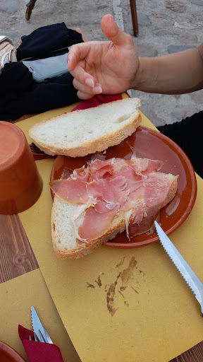 Read moreReally don't know what to say... You'll find a cheaper and tastier lunch in ROME. My girlfriend and I stopped for a sandwich - exclusively meat filled by the way, no bother for me, but no vegetarian options - and opted for the Panino Prosciutto Crudo. For 5€ we literally received a few slices of prosciutto between 2 slices of rock hard bread, no salad, nothing special, and incredibly disappointing. Yes, I know this is literally what a sandwich is, but for 5€, the quality was appalling. Service was no better, waitress stood at our table and waited for us to order the moment we sat down, without saying a word... We hadn't even looked at the menu. When we said we needed 2 minutes, she was visibly annoyed. Comparably, all the restaurants are expensive in Monteriggioni, hence the 2 stars, but I can only speak for this...