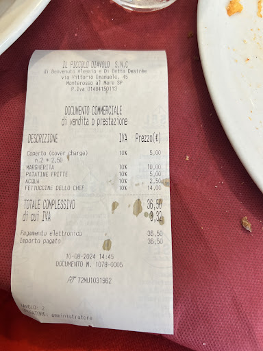 Read moreHo mangiato male ma questo livello non l'avevo mai raggiunto.. premesso che ho passato 2 giorni nelle 5 terre e che ho mangiato sempre benissimo, dalla focaccia ligure ai ristoranti di pesce, tutto perfetto..l'ultima sera, affamatissimo proviamo questo posto, visto camminando. Ordiniamo delle pizze.. Ce ne siamo andati dopo aver visto e assaggiato un pezzo delle pizze che avevamo ordinato, una margherita tosta da tagliare, cotta male, mozzarella e pomodoro non avevano sapore, distribuiti male e cotti peggio (idem la qualità della marinara presa dalla mia compagna) . Ho avvisato la cameriera che la pizza non era di nostro gradimento e che potevamo pagare e andarcene, e lei ha risposto piccata "ce ne ordinano tantissime", mah penso.. strano, siamo famosi in Italia per la pizza, l'ho mangiata a Napoli, a Milano, a Roma ma questa "pizza" sembrava una pezzo di farina con del pomodoro sopra (giuro era imbarazzante). Poi leggo nelle recensioni oggi, e alla signorina vorrei dire, ma ne avete tantissime di pessime recensioni sulla pizza (alcune dicono che fosse surgelata, in effetti..), comunque che brutta figura che avete fatto signorina! Alla cassa ho provato a essere gentile, a indicare che ero molto affamato e che non mi era mai capitato di andarmene così, il cassiere ( penso proprietario), non sapendo cosa dire ha comunque addebitato 20 euro su un conto di circa 32 euro ( 1 margherita 10 euro, 1 marinara 8 euro, 1 vino della casa da 0.50 6 euro, un acqua e coperto). Beh che dire, si commenta da solo il prendersi i soldi lo stesso. Il locale è anche carino, ci sta avere tanti turisti che devono mangiare e forse si accontentano, ma c'è un limite, siamo in Italia, quella non è degna di essere...