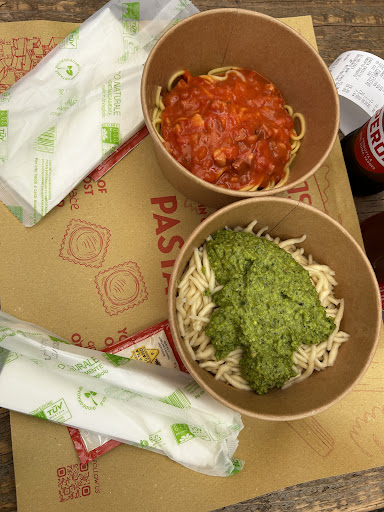 Read moreAs pointed out by other reviewers, this is a fast food pasta restaurant. You order at the counter and, in a few minutes, your number is called, at which point you pick up your pasta at the counter. The pasta is served in disposable paper containers, and disposable plastic flatware is provided. I personally don't find the fast food pasta concept to be offensive, as I've had good fast food pasta before. Also, it's convenient if you're in a hurry. As far as portion sizes here, I think they're fine but may deceptively appear small inside of the deep paper bowels. My issue with Pastarita has to do with the taste of the food. We didn't get adventurous with our orders and instead stuck to what we thought were conservative, safe bets. Yet, neither of us liked our food. I had a few forkfuls and left the rest. My dining companion grudgingly ate all of his due to strong hunger. On the plus side, there was no cover charge to sit. Also, there are vegetarian options. But, since neither I nor my companion enjoyed our food, I can't give this restaurant more than two stars. I think, however, if Pastarita ups their game with the quality of their sauces, they'll be a worthy choice for a quick meal during a brief...