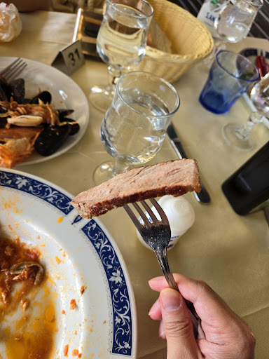 We ate here for dinner based on a friendly local recommendation. It was late and crowded with a unequal ratio of wait staff to customers. This is not uncommon in Italy, so we patiently awaited service. In the meantime, two ladies stopped a waitress in the street and asked for a table. She gave them the one next to ours and started serving them drinks. She then realized that we were already waiting and took our order as well. The point is by the end of the evening she was inattentive, the food was bland, and she confused our bills with the ladies next to us. She gave us their itemized bill instead of ourselves. No problem but when we asked for an itemized bill too she got angry and started cursing in Italian. She was impatient and impolite and should be ashamed of herself. We left feeling as if she only served us because she had to and that it was a great imposition to do so. This place has a great location by the water so it attracts many people but if you ask me it isn't worth it. Go to Ristorante Al...