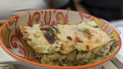 This was a real hidden gem (though several hundred other people found it so maybe not so hidden! 😉). It is kind of tucked out of the way though. The pasta here is delicious. The caprese salad as a starter was wonderfully simple but bounisimo! The right balance of ripeness of tomato and mild saltiness of fresh mozzarella. Drizzle just a splash of balsamic across it though to get the real lunch. The trofie q/ basil pesto was so unadulterated it was hard to believe the complexities that came though as I took each bite. It just grew and grew. Very mild at start but flavor pops the more you eat. The lasagna was also good ..not you typical tomato sauce slathered style you see back in US. this was creamy and just the right amount of tomato sauce to complement. The meat was not overly spicy or under either. Again a subtle layered flavor! Last but not least, the red table wine they use was really a ⭐. It was served simply, and the called it a 'natural wine' I think maybe implying organic, but not sure. Regardless it was not acidic at all and was balanced wet/dry with black currant and rasperry-ish undertones as well as little spiciness in there. The staff was absolutely fantastic and we're running constantly to keep up! Don't miss...