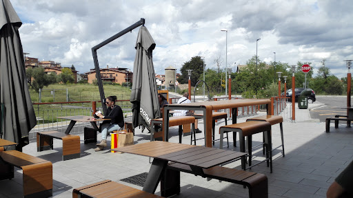 Read moreQuesto MC non è male, poi con l'ultima ristrutturazione che gli hanno fatto è diventato molto più accogliente. Il personale è gentile ma forse un po' lento nel consegnare gli ordini, sia quando c'è tanta gente sia quando c'è poca clientela. Purtroppo (ma questo non dipende da loro) il menù è sempre lo stesso, senza mai che cambi qualcosa, quindi alla fine ogni volta che ci si va (almeno per me) si finisce per ordinare sempre lo stesso menù. Non mi metto a specificare quale menù prendo io, però posso dire con certezza che: le patatine, se le si prendono di mattina, quando hanno appena acceso la friggitrice, sono davvero buone, mentre se le si prendono qualche ora più tardi, o sono mosce o sono fredde; i panini saranno anche buoni, però molto spesso sembra che gli preparino senza guardare (nel senso che mi è già capitato molte volte che i panini fossero storti oppure che avessero i condimenti sparsi un po' a caso); le bevande sono sempre dentro a quei bicchieri di carta, anche se devo dire che molte volte mi è capitato di vedere pezzi di carta del bicchiere galleggiare nella bevanda, poi non so se sono io ma ultimamente la bevanda della coca cola ha un sapore diverso dal solito, come se ci avessero aggiunto o cambiato qualcosa, ma forse sono solo io.