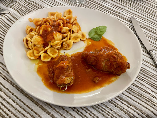 Read moreUbicata nel cuore del centro storico di Montescaglioso, questa vecchia piccola trattoria propone un menù semplice costituito da un ventaglio essenziale di proposte. Ottima la pasta fresca casereccia. Interessante ed originale la proposta del piatto unico composto da orecchiette fatte a mano al sugo di involtini di carne di cavallo e da due involtini (stufati ad arte e tenerissimi) tenuti da un piccolo spiedo di ferro, di particolare pregio in quanto di sapore deciso e con carattere molto definito quantunque inaspettatamente delicato. Il tagliere di salumi e formaggi, unico antipasto proposto, viceversa, risulta piuttosto anonimo (soprattutto gli affettati), in quanto privo di carattere e tipicità. Unico elemento di un certo interesse la marmellata di peperone dolce per accompagnare i formaggi. Decisamente scadente il pane, dato sorprendente, oltre che increscioso, considerata l'elevata qualità diffusa della panificazione nella provincia di Matera. Prezzo leggermente sovradimensionato. Bilancio di sintesi:: tre stelle e mezza, arrotondate a quattro a titolo di incoraggiamento, tenuto conto che lo sforzo necessario a migliorare non appare di certo...