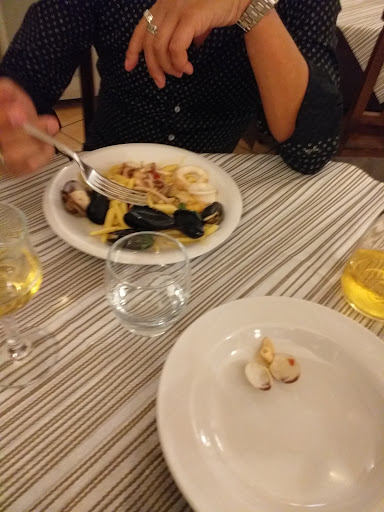 Cibo: abbiamo ordinato pepate di cozze, fritture miste di pesce 🐟, spaghetti con colatura di alici 🍝, una pizza 🍕 e non ho trovato una cosa che non mi sia piaciuta! Non capita sempre diciamo. Per fortuna il menù non è enorme ma, non si fa mancare nulla. Abbiamo preso due fuori menù, tra l'altro, quindi chiedete sempre al personale di sala se c'è altro.