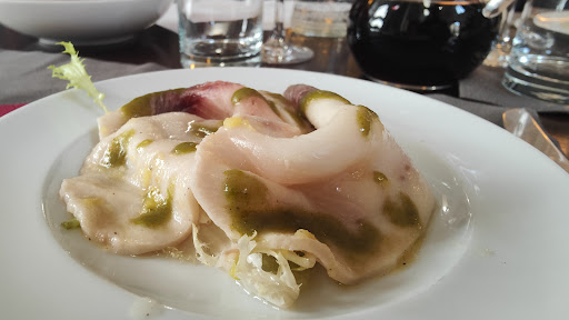 Read moreWe were welcomed by very friendly staff and a great view. We sat in the inner terrace of the restaurant with great ambiance. The menu had a lot of meat alternatives so we had to ask for vegetarian or fish recommendations. We got a starter that wasnt on the menu, a muffin-like auburgine dish which was good, and a plate with salmon, which was fresh but Im not convinced is a local product (we were told everything was local). We got then shrimp fritters with fries and two pastas. Everything was quite good, but...