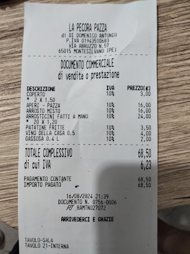 Read moreDevo dire che sono rimasto davvero sorpreso dal locale tra dentro e fuori 2 cose nettamente diverse, nel senso che da fuori non riesci a capire come può essere all'interno ma poi una volta entrati il locale appare davvero molto carino ideale sia per comitive che anche per una favolosa cenetta per 2 persone, quindi faccio i complimenti hai proprietarii/o ,ma ora parliamo della cosa più essenziale ovvero COME SI MANGIA.....bellissima domanda una cosa è certa SI MANGIA DA FAVOLA Arrosticini grandi sono una meraviglia, con gli antipasti buonissimi, ma la cosa che più mi ha sorpreso da non credere sarà assurdo ma la portata che più mi ha lasciato senza parole sono state le PATATINE se non ricordo male sul menù vengono chiamate patatine country,sono una vera delizia ed è assurdo perché le patatine le mangi da perttutto ma li sono veramente favolose credetemi, cmq il solo consiglio che posso darvi è andate e provate, ha dimenticavo anche il prezzo non è niente male...