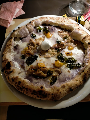 Read morePremetto di aver prenotato venerdì per sabato sera alle 20e30. Arriviamo puntuali in pizzeria io e la mia fidanzata e veniamo accolti in maniera un po caotica dal personale.C"era una lunga coda di clienti per le pizze da asporto . Veniamo fatti accomodare su un tavolino traballante vicino la porta di ingresso nonostante il locale non fosse pieno. Ordiniamo dopo circa un decina di minuti. Ci vene portata una bottiglia di acqua e un calice di vino rosso mentre avevamo chiesto 2 calici di vino bianco. Successivamente ci viene cambiato il vino con quello richiesto e mentre brindiamo ci accorgiamo che era caldo. Dopo un ora di attesa alle 21e 35/40 arrivano le pizze che deludono le aspettative...niente di che. Conclusione dopo esserci congelati per gli spifferi della porta aperta di continuo per il via vai di clienti e un attesa infinita per 2 pizze andiamo via molto delusi. SCANDALOSO...