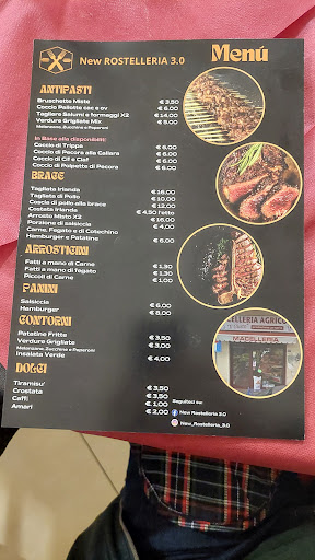 Il menù è molto semplice: Antipasti: bruschetta, pomodori, formaggio (non sempre) Secondi: arrosticini di pecora o fegato Vini e acqua a volontà.