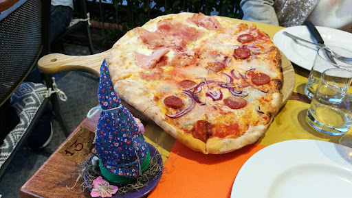 We were looking for some ambience for a relaxed inexpensive lunch and decided on the pizzeria because it had outside seating near the larger plaza. It was nice to be outside but the food was a little disappointing. Out of the 4.5 of us dining 1 person was happy with his meal: The pasta with parmesan and pepper, although it was a bit cheesey for my liking (we tried the same dish elsewhere and it was much more fresh). The seafood pasta wasnt fresh understandably. The pasta with mushrooms was very oily (by Italian standards too) and the cheese gnocchi was extremely rich. The spinach side was too salty to eat but we were happy to receive a refund for this dish. The caprese salad was good and all portions were generous. We would have liked pizza but it is only available in the evening.