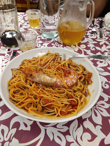 We kwamen om kwart voor negen aan. Buiten voldoende parkeerplek, maar veel auto’s die geparkeerd stonden. Eenmaal binnen gekomen staan we in een restaurant geheel verlicht met tl-balken. We lopen door naar de bar, wat eigenlijk geen bar mag heten maar een loket van waar de espresso, de pizza’s worden uitgegeven en waar je mag betalen als je klaar bent. De zaak is helemaal vol. Een tweetal tafels zijn leeg, maar nog niet afgehaald en schoongemaakt. Het personeel rent af en aan. Hectiek ook in de keuken. De enige met overzicht is de pizzabakker die midden in de zaak bij zijn stenenpizzaoven de één na de andere pizza de oven in gooit. Ik probeer bij een serveerster te vragen of ze een tafel voor twee heeft. Stoïcijn gaat ze door met haar werk, maar ik zie in haar blik dat we naar één van de nog niet afgehaalde tafels mogen. We zitten net of ze haalt alles van tafel en komt met een schoon tafelkleed en bestek. De kaart heb ik in tweevoud al meegenomen. We bestellen een pizza formagio, een insalatono, fles plat water en een karaf 1/2 rode huiswijn. De drank staat binnen afzienbare tijd op tafel. Het is een genot te zien hoe ongeorganiseerd alles gaat, en de klanten toch allemaal tevreden naar buiten gaan. De bediening die alles uit de keuken en van achter de bar en uit de koelkast snel op tafel zetten. Jammer dat ze niet direct iets mee terug nemen van de tafels waar men klaar is... Maar iedereen is voldaan, heeft lekker gegeten voor een mooie prijs. De plaatselijke bevolking doet er zich te goed aan en wij toeristen genieten en bekijken hoe alles er aan toegaat. Dat is ook vakantie! Prima tent!! Ik kom er...