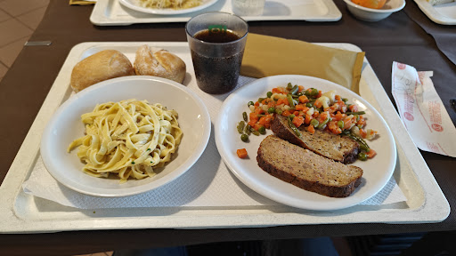 Il ristorante self service è semplice ma molto ben organizzato; all'ingresso posto al primo piano c'è la zona di scelta delle vivande e le casse, tutto il resto dell'ampio salone è adibito alla consumazione del pranzo, con molti posti, ideale per gruppi di più persone. Prima dell'uscita un piccolo angolo bar per il caffè compreso nel prezzo. Il personale è molto gentile pronto ad aiutarti in qualsiasi necessità, la scelta dei cibi è varia con piatti semplici, molto gustosi e porzioni abbondanti. Le bevande sono incluse nel prezzo e accessibili tramite dispenser sparsi nella sala. Il prezzo per il pranzo è assolutamente concorrenziale, ottimo per un pranzo completo e veloce....