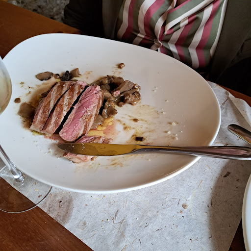 Read morePurtroppo la nostra esperienza, per diversi motivi, è stata poco soddisfacente. Per iniziare, ci aspettavamo un ambiente più elegante e anche che i prezzi del menu, sul sito e sul QR code, coincidessero. Ma la cosa più deludente è stato l'atteggiamento e la poca cordialità e professionalità della cameriera che ci ha serviti. Mi sono permessa di fare notare che il piatto del tavolo accanto- lo stesso ordinato da me- non aveva il pesto di pistacchio come riportato sul menù (cosa di cui si stava lamentando anche l'altra commensale). La cameriera ha risposto che c'era della granella di pistacchio, come se fosse la stessa cosa, con un fare poco cordiale e fingendo di non capire l'incongruenza tra quanto riportato sul menù e il piatto servito. Inoltre, appena arrivati, avevo consegnato una torta alla stessa cameriera. Naturalmente mi aspettavo che questa venisse riposta in frigo nell'attesa, invece era palesemente rimasta fuori dal frigo per tutto il tempo della cena: testimonianza di ciò sono la torta molto morbida e la scatola calda. Sì, perché la torta ci è stata portata direttamente nella scatola, nonostante ci fosse un servizio da pagare a parte 🤣.Visto l'atteggiamento precedente della cameriera, ho evitato di fare notare questa brutta caduta di stile. Specifico pure che il locale vedeva la partecipazione di 9 persone totali, perciò una dimenticanza non è giustificabile.Per finire, personalmente non sopporto le tovagliette di carta al posto della tovaglia: trovo che sia molto poco elegante in un ristorante. Insomma, il cibo servito era pure di qualità, ma il servizio offerto fa sì che io non consigli...