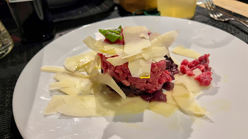 The menu offers a well-curated selection of dishes, including a few pasta options, salmon/prawn dishes, hamburgers, a flavourful steak tartare, a grilled steak, and delicious desserts. And, of course, the cocktails were excellent, enhancing the night.