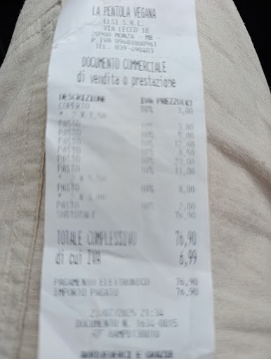 Read morePremetto col dire che non sono vegana né vegetariana, ma che avendo un'intolleranza alle uova, nei ristoranti non vegani mi ritrovo spesso in difficoltà con la scelta dei piatti, perché quasi sempre è utilizzato l'uovo. Quindi perché non provare un locale dove sono sicura di poter mangiare tutto, senza timore di trovare spiacevoli sorprese? Mi sono recata alla Pentola Vegana in compagnia di mia mamma, anche lei onnivora. Siamo rimaste piacevolmente stupite dalla varietà di pietanze sul menù. La modalità di servizio è diversa dal solito: ci si reca presso un grosso bancone (stile banco gastronomia del supermercato) da cui si possono scegliere i cibi e comporre il proprio piatto, che viene poi pesato (si paga in base alla quantità di cibo richiesta). Il cibo è gustoso e leggero e il prezzo è davvero contenuto. In due abbiamo speso 36 euro (specifico che abbiamo anche acquistato una torta intera che abbiamo portato via, al prezzo di una quindicina di euro), quindi si spende sui 10 euro a testa per un pasto abbondante, compreso di dolci e bevande. Il personale è diponibilissimo e pronto a soddisfare ogni richiesta. Lo consiglio ovviamente a chi segue una dieta vegana, ma anche chi fosse curioso di provare piatti "un po' diversi". Il posto è molto informale (lo dico in senso positivo) e ha pochi coperti (15-20 se non sbaglio), quindi conviene prenotare. Penso che...