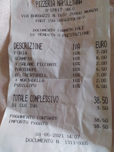 Partiamo dal presupposto che la scelta del locale è stata dettata dal fatto che ero con una persona intollerante al glutine, e questo è uno dei pochi locali a prevedere pizze senza glutine. Chiamo per prenotare un tavolo per due persone, dall'altra parte del telefono mi viene risposto che se volevamo il tavolo alle ore 20 avremo dovuto liberarlo entro le 21, altrimenti potevamo scegliere di mangiare alle ore 21 senza limiti di orario. Scegliamo la seconda ipotesi per non avere il fiato sul collo mentre mangiamo. Non è molto professionale questa scelta, ma potrebbe essere giustificata dal fatto che hanno molta richiesta. Ci presentiamo con un leggero anticipo, entro nel locale e subito la signora alla cassa mi riprende perché non avevo la mascherina, quando lei era la prima a non indossarla : ero solo venuto ad avvertire del mio arrivo, no per infettare mezza provincia o per giocare a chi ha la mascherina e chi no! Aspettiamo educatamente fuori all'esterno finché non ci viene liberato il tavolo, veniamo fatti accomodare. Dopo circa venti minuti di attesa a guardare il mobilio ai limiti del trash, ancora non ci viene portato un menù, al che spazientito riprendo un inserviente che si scusa e ci porge i fogli, ma... "allora? Avete scelto? Vi porto un antipasto?" Ma se avevamo appena aperto i menù... Questo pressing è bruttissimo, avrei preferito scegliere con molta più calma. Decido di prendere una pizza normale, la mia ospite chiede per una variante senza glutine. Otto minuti di attesa ed arrivano le nostre pizze : buono il tempo di preparazione, ma..... HANNO PORTATO ENTRAMBE LE PIZZE CON GLUTINE! Per fortuna ci siamo subito accorti del gravissimo errore perché per chi non lo sapesse la celiachia è una cosa seria, e chi lavora con il cibo dovrebbe prestare la massima attenzione su queste cose!!! La pizza viene ovviamente respinta, mentre io inizio a consumare la mia (da solo). La pizza corretta viene servita dopo altri dieci minuti, ma ormai io avevo già finito la mia ordinazione, mentre il nervoso aveva fatto passare la fame alla mia ospite. A parte questa orrenda disavventura (che poteva finire in pronto soccorso), la pizza qualitativamente è appena sopra la media ma non giustifica il prezzo notevole per un locale molto fuori mano dal centro di Monza. E soprattutto non giustifica l'incompetenza e la disorganizzazione orripilante da parte del personale, il quale non ha fatto assolutamente nulla per scusarsi o per invogliare il cliente a trovare una ragione per tornare : e così sarà, non torneremo mai più da O' Strit! E forse ci è andata ancora bene, visto che ai nostri vicini di tavolo gli è capitato il cameriere che stava per far scivolare la mozzarella ripiena sul tavolo! Vi serve più serietà e meno belle...