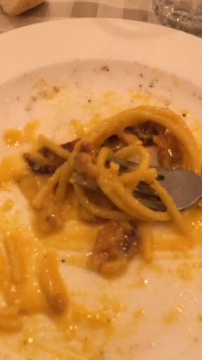 Ci sono stata ieri sera per un compleanno. Per me è assolutamente NO! Abbiamo optato per il menù a 30€ che prevede antipasto, giropasta (3 primi), dolce, acqua, vino, bibite, caffè e ammazzacaffè. Sembra fantastico, invece...antipasto servito frettolosamente, quasi ti mettevano l'ansia. Comprendeva: un insalatina di sedano e altro con una poltiglia di acciughe che la rendeva talmente salata da essere immangiabile. Una purea di fave con cicorie, abbastanza buona ma troppo piccante per i miei gusti. Fiori di zucca pastellati che sarebbero stati buoni se non fossero stati pieni d'acqua e non avessero avuto all'interno un'acciuga... Mini supplì di riso e mini pizza fritta con sopra la mortadella. Uniche cose buone (ma non buonissime), dell'antipasto. Ah, il tutto era contato a uno a testa. Si passa ai primi. Nel giropasta sono compresi una Cacio e Pepe, una Gricia e un'Amatriciana. La Carbonara solo su richiesta. Non sapevo di doverla richiedere (Visto che la cosa è scritta sul menù che ho visto solo in seguito sul sito ufficiale, che non ci è stato portato al tavolo!) quindi sono andata in un ristorante romano senza assaggiare la Carbonara di cui sono tanto fieri. La Cacio e Pepe era buona. La Gricia, NO! Davvero troppo unta e con troppa cipolla, mi ha proprio nauseata al primo boccone. L'Amatriciana, abbastanza buona ma ormai mi si era rovinato il gusto per colpa della Gricia e non ho potuto apprezzarla. Tra il piatto di Cacio e Pepe e quelli dopo abbiamo atteso più di venti minuti. Il dolce compreso nel menù, poi, non era a scelta tra quelli del ristorante, ma era ridotto ad un vassoio di legno con sopra dei micro pezzettini di crostata in due gusti (Albicocca e frutti di bosco) e dei biscotti a forma di ciambelle stracolmi di zucchero. L'ammazza caffé, infine, non è a scelta ma scelto da loro o mirto o limoncello. Gli altri sono extramenù, anche se alla fine il proprietario ha deciso di offrire il giro. E questo è stato un bel gesto e mi ha fatto aggiungere una stellina alla recensione. L'altra è per le poche cose buone che ho mangiato. Ah, per tutta la serata, anche se fuori c'erano solo 21° c'è stata l'aria condizionata accesa e il ventilatore sulle nostre teste. Sono tornata a casa senza voce e con il mal di testa. Mi dispiace sempre scrivere recensioni negative ma purtroppo l'esperienza non è stata per...
