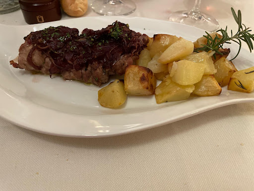 L'antipasto di salumi aveva una qualità allineata a qualunque supermercato della GDO. In merito alla carne... Va bene che avete dichiarato il peso... del chilo e 200 grammi almeno 800 saranno stati di osso, 100 di grasso immasticabile e ci sono rimasti tre pezzettini di carne a testa peraltro per nulla piacevoli. Arrivati rapidamente, per i motivi di cui sopra alla carne attaccata all'osso, siamo stati male. Lo abbiamo fatto presente e si è fatto finta di nulla. Il dolce invece era gradevole. Il vino in generale non lo avrei posizionato al sole sopra ai tavoli dei clienti.