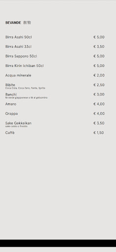 I piatti sono vari e non ci si limita al solo sushi. È possibile anche usufruire del menu alla carta: i piatti sono i medesimi del menu all you can eat; ma viene servito un piccolo antipasto e se non si mangia in maniera eccessiva è piu conveniente dal punto di vista economico (consigliato soprattutto se si vuole degustare udon o soba).
