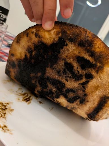 Era la mia pinseria preferita, sono stato nel loro locale e ho ordinato spesso con Deliveroo. Tutti possono sbagliare, certo, ma consegnare una pizza da 13 € in questo stato come avvenuto questa sera è inaccettabile. Immangiabile a causa del sapore di bruciato trasmesso al resto della pizza. Inoltre aggiungerei che le pizze mi sembrano più piccole di come lo erano inizialmente e in generale anche la qualità complessiva sembra diminuita, a fronte di prezzi aumentati eccessivamente. Ad esempio la torinese, che mi piaceva particolarmente, ora ha un retrogusto amarognolo a causa dei porcini di differente qualità che vanno a coprire il resto dei sapori. Peccato veramente perchè la pinsa è abbastanza rara, soprattutto a Monza.