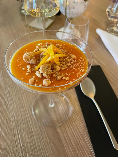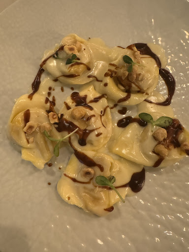 Read moreSiamo stati a pranzo di sabato. Ottimo il fatto di poter parcheggiare dentro. All'ingresso ci sono dei gradini e non ho notato scivoli o elevatori per chi non possa farli. Non posso però escludere ci sia un altro accesso privo di barriere (quindi, se serve, meglio chiamare e sincerarsene). Ambiente abbastanza elegante, anche se per me la mancanza della tovaglia sul tavolo fa pensare ad una mensa aziendale o a un autogrill. Bene la presenza di un pouf su cui appoggiare borsetta o altro. Nel mio menu c'era il primo foglio volante con evidenti segni agli angoli che facevano pensare fosse così da diverso tempo. L'ho sistemato io, ma visto come sono fissati quei fogli, sarebbe meglio controllarli ogni tanto... Nel menu ci sono diverse alternative, ma i prezzi non sono a buon mercato (mediamente ogni piatto è sopra i 20€, mentre i dolci costano 8€). La qualità ci è parsa buona, per cui diciamo che sono accettabili. Il tutto lo giudico buono, ma non eccezionale. Avrei volentieri preso il menù di carne a 45€ o quello di pesce a 55€, ma si può fare solo se lo scelgono almeno due persone. Peccato. Comprende antipasto, primo, secondo, dolce. Non è però indicato se include anche il coperto e il caffè. Non c'era molta gente, ma abbiamo dovuto attendere un po' prima di ricevere quanto ordinato. Fortunatamente nell'attesa ci hanno portato una buona focaccia, che non avevamo ordinato, per cui l'abbiamo molto apprezzata, considerandola "offerta". Purtroppo nel conto l'abbiamo poi trovata addebitata (4€). Spero si sia trattato di un errore, altrimenti è proprio stata una caduta di stile !!! Ahimè temo che ricorderemo più questa cosa che il resto e questo è il principale motivo delle 3 stelle. Non è una gran cifra, considerato l'importo del conto, ma è stato antipatico. In tanti altri posti in cassa elencano le varie voci del conto prima di procedere all'addebito e questo evita inconvenienti del genere, sempre che si sia trattato...