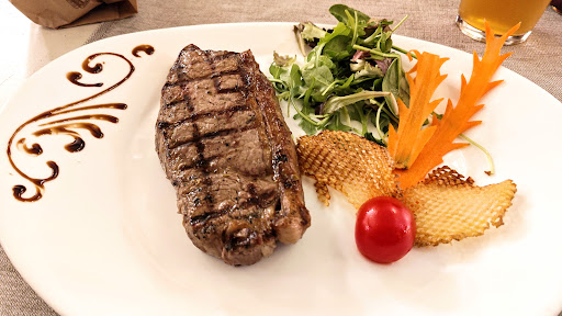 Mamma mia, this place is excellent! My wife and I just found this place while enjoying the Christmas lights and shopping of Monza. We didn't have a reservation, but they kindly managed to find us a table anyways. The atmosphere was wonderful, with a beautiful interior, interesting paintings in the walls done by a Portuguese artist, and neat architecture... Even the music was good! I had an appetizer and second plate, both from the chef's recommendations part of the menu which featured a lot of seasonal specialties: carciofi impanate e fritti (breaded and fried artichokes), and Bife de chorizo alla griglia con carciofi dorati. (New York strip steak of argentinian beef with golden artichokes), and finished with a yummy lava cake. The appetizer of lightly fried artichokes was light and tasty, and the steak was delicious! I ordered the steak rare, and it came perfectly cooked, seared perfectly and nice and pink inside. The flavor was great, and it was obviously high quality beef. The artichokes were absolutely delicious... If I wasn't already full, I would have asked for another entire plate full! As an American in Italy I find myself missing all of our good IPAs... So I was pleasantly surprised to find that they even had an artisanal IPA on tap, and that it was really good and well balanced!!