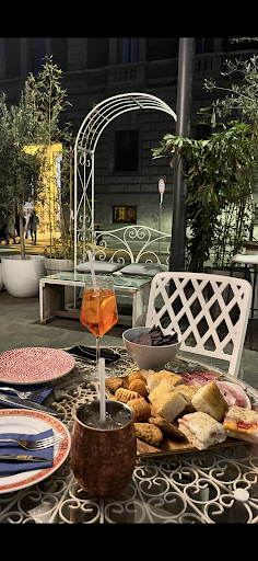 Abbiamo festeggiato qui il compleanno di un amico, che aveva affittato la sala al piano -1 Location carina e rustica. Non ho capito se vendono anche oggetti di casa( stile maison du monde) perché erano accatastati dovunque su vari scaffali ai lati della sala. L aperitivo era molto buono e vario. Il primo è secondo invece lasciavano un po a desiderare: risotto senza anima (sembrava in bianco saltato al burro) e la carne era secca e poco saporita. Capisco che non abbiano la cucina e che quindi sia stato presumibilmente fatto in altra location o da altra azienda, ma occhio ai fornitori. Servizio un po distratto (mancanza di posate e tovaglioli) e non mi ha fatto impazzire un fatto: Abbiamo avanzato un bel mezzo tagliere di formaggi e altri antipasti. Alchè ho chiesto al cameriere di tenerceli da parte per potarli a casa, visto che erano stati pagati. Al momento del conto però sembra siano spariti in cucina. I casi sono due: o sono stati buttati ( in questo caso sarebbe stato uno spreco enorme) o sono stati fatti 'sparire' in cucina per poi riutilizzabili all aperitivo del giorno dopo. Entrambi i casi sono poco...