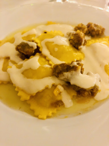 Read moreForse l'aspettativa era troppo alta per le buone recensioni, ma siamo rimasti veramente delusi. Per evitare il caos del sabato sera siamo andati subito all'apertura, e in effetti eravamo per fortuna quasi soli e il servizio è stato veloce. Peccato sentirci "osservati" dallo staff, che quasi volevo parlare sottovoce per sentirmi meno in imbarazzo. In ogni caso, aspettandoci dei buoni primi, soddisfacenti e caserecci, saltiamo gli antipasti per non rovinarci l'appetito e prendiamo subito tagliolini al ragù e ravioli di cernia. Buon sapore, ma niente di eccezionale! Soprattutto, porzioni microscopiche. Ragù non pervenuto e i miei gamberetti (anche se sul menu c'era scritto gamberi) contati. Veramente ci siamo rimasti malissimo! E di spendere altri soldi per mangiare un secondo che non ci andava (ripeto, siamo venuti qui cercando della buona pasta fatta in casa) non ci andava. Quindi: 2 piatti di poca pasta con poco, pochissimo condimento, 1 acqua naturale, 2 caffè ben 34 euro. Sinceramente buttati. Forse per un veloce pranzo di lavoro potrebbe andar bene, ma credo che la "schiscetta" non abbia molto da...